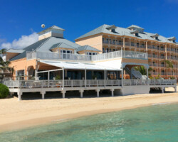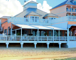 This client has two patio areas overlooking the water off of the dining room of David’s Deep Blue Restaurant, there at the Morritt’s Resort. The restaurant is right on the water, with breath taking views overlooking the Caribbean Sea. This area is used throughout the year for outdoor breakfasts, dining and special events. Located in Grand Cayman, Cayman Islands, in the Tropics; the client needed sun and weather protection so their guests could still enjoy eating alfresco anytime.