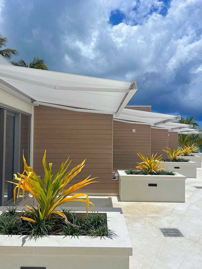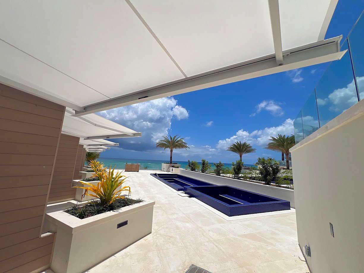 The Watermark in Grand Cayman New Retractable Awning Project in Grand Cayman Prev 1of8 Next The Watermark is a luxury condominium development located on Seven Mile Beach in Grand Cayman.